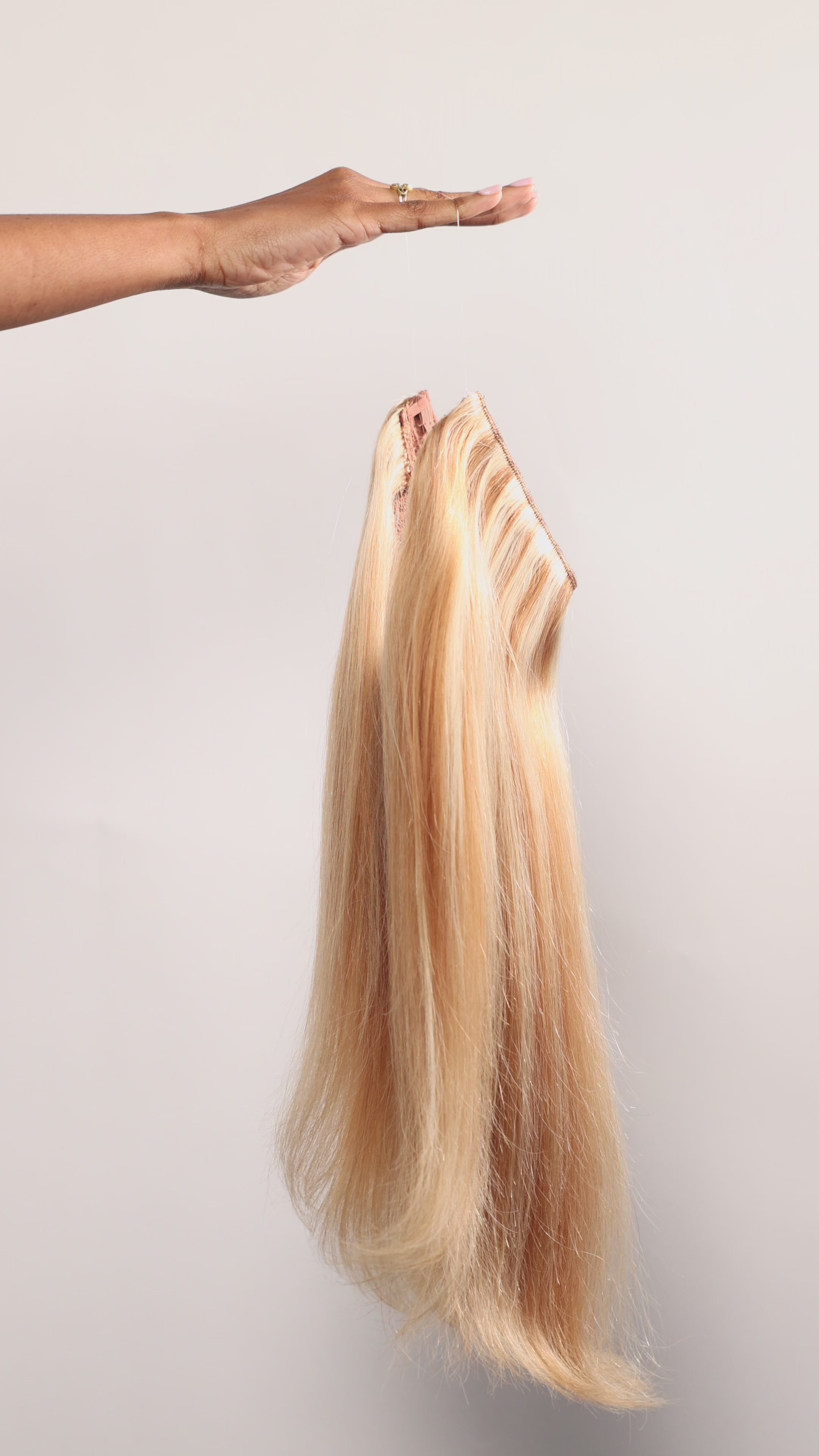 14. We recommend if you're styling your extensions with a hot tool (curling or flat iron) to use a hanger with clips attached to secure your hair to.