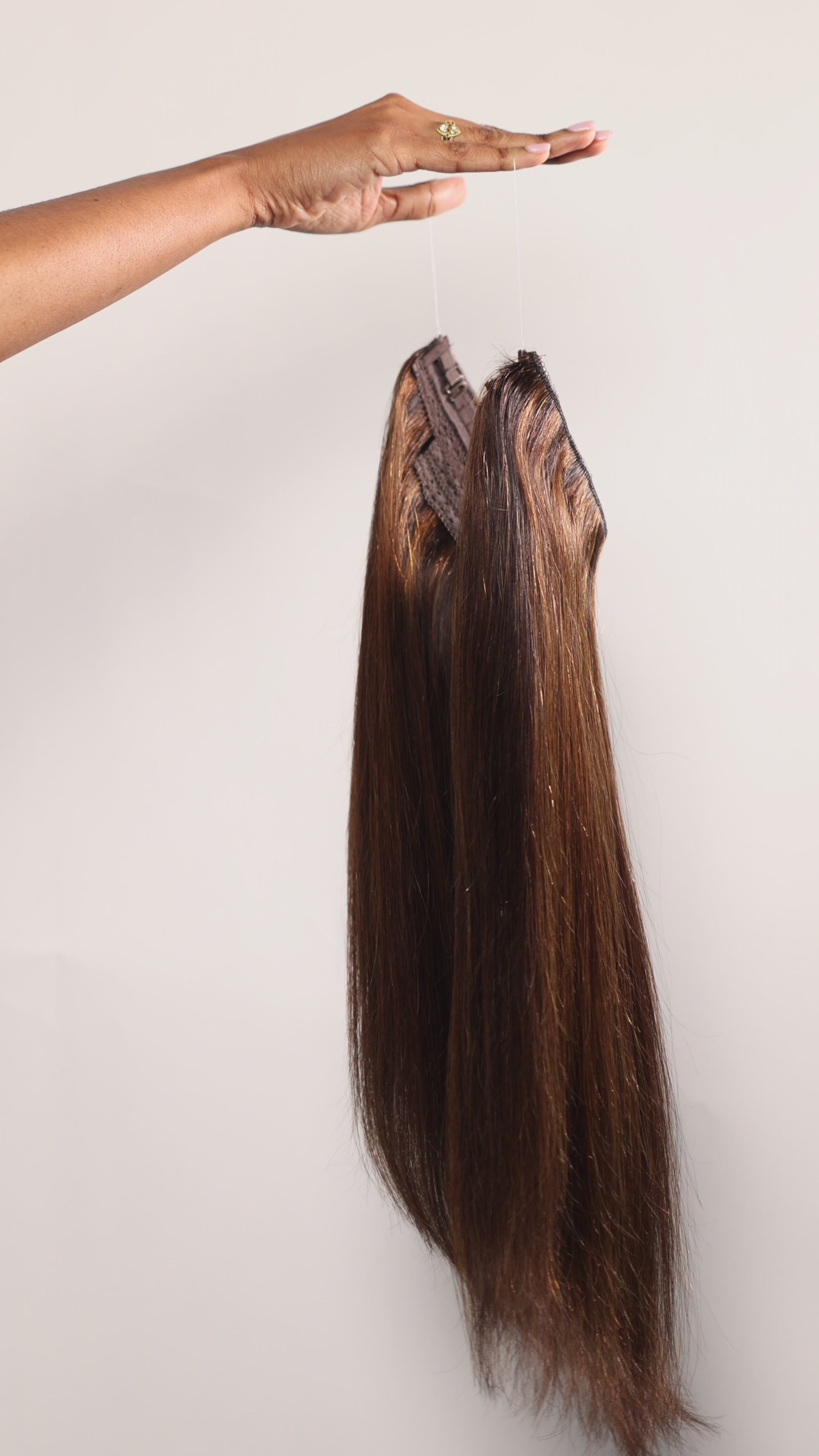 Achieve instantly gorgeous celeb-worthy hair with AquaLyna's Ultra Narrow Clip Ins, Aura (Halo) Extensions, and Ponytails.
