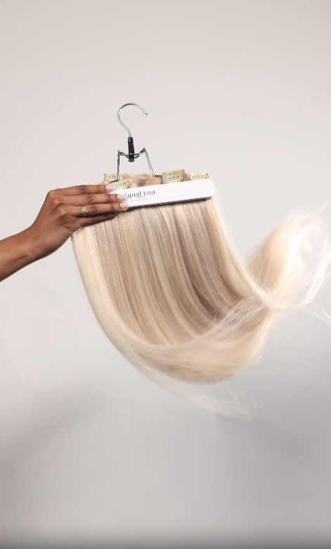 Achieve instantly gorgeous celeb-worthy hair with AquaLyna's Ultra Narrow Clip Ins, Aura (Halo) Extensions, and Ponytails.
