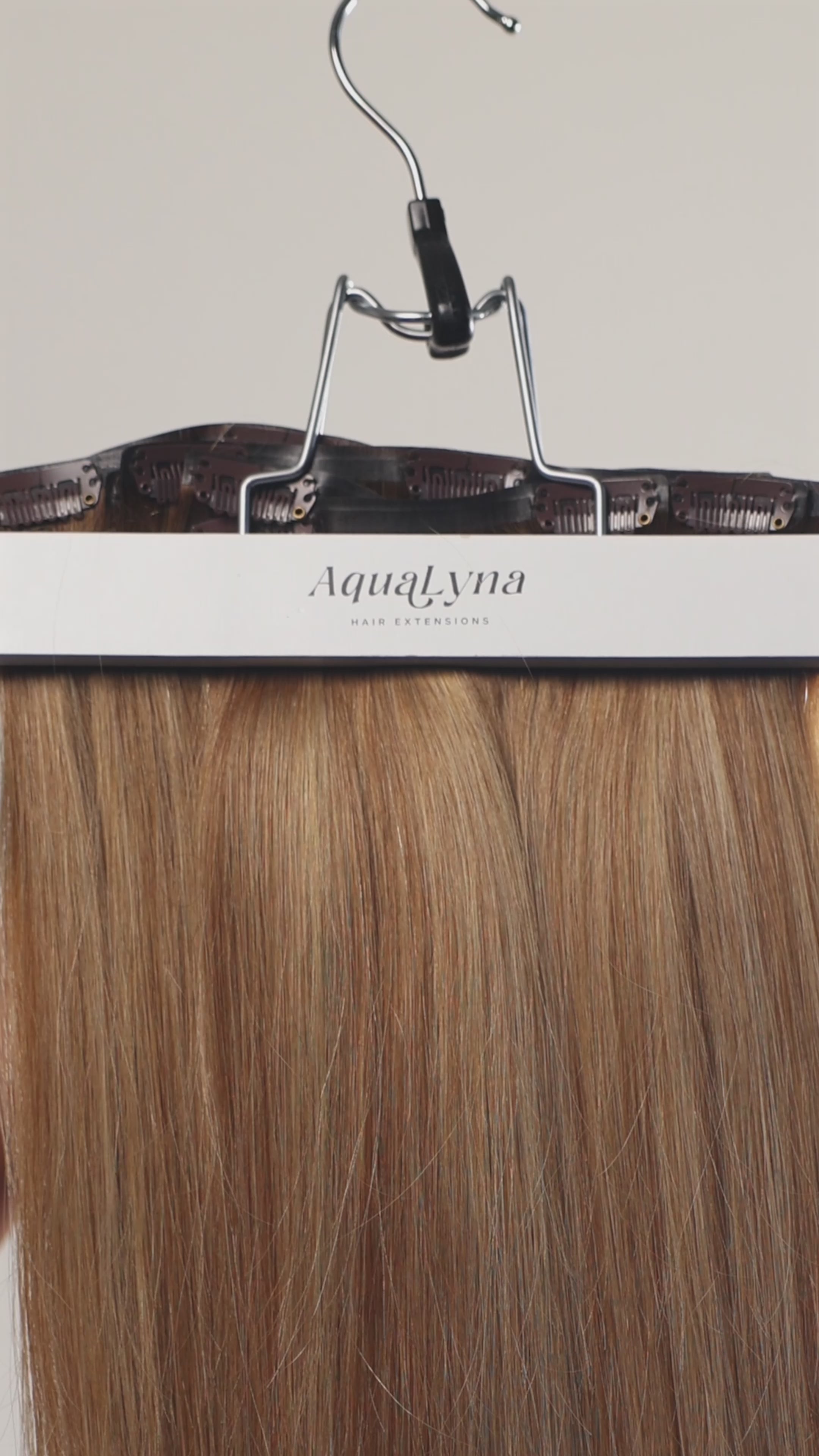 The AquaLyna Ultra narrow clip-ins offer a premium solution for hair enhancement, crafted exclusively with 100% human Remy hair, ensuring natural movement and seamless blending with your own hair. Renowned for their ultra-thin design, they stand as the most comfortable clip-in extensions available, comfortably laying flat against the scalp for a virtually undetectable look. With the ability to instantly add length and volume, these extensions provide a transformative effect without compromising on comfort or damaging your natural hair, making them a reliable choice for a stunning, effortlessly enhanced hairstyle.