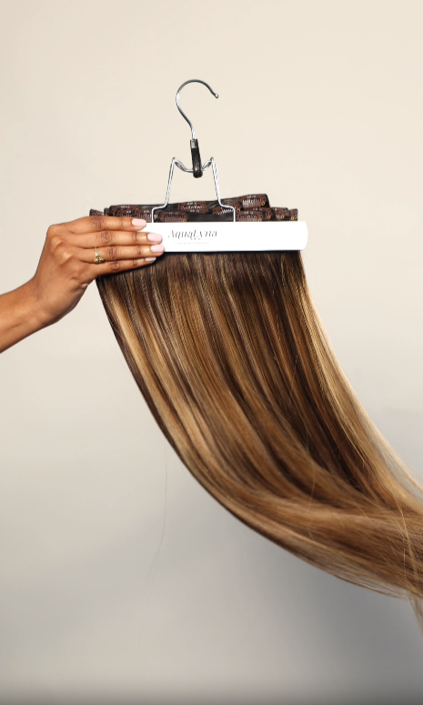Achieve instantly gorgeous celeb-worthy hair with AquaLyna's Ultra Narrow Clip Ins, Aura (Halo) Extensions, and Ponytails.
