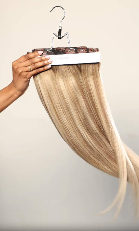14. We recommend if you're styling your extensions with a hot tool (curling or flat iron) to use a hanger with clips attached to secure your hair to.